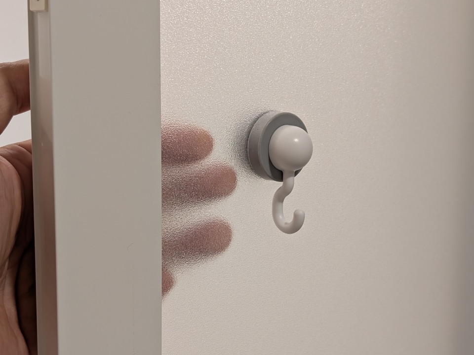 実際にはカラーボックスの側板など、1~2cm程度の厚みがあっても吸着できるにもかかわらず、窓ガラスという控えめな用途をメインとしているのは、メーカー側の立場になって考えるとよく理解できる。厚みが増せば吸着力は低下し、フックに引っ掛けた荷物が落下するリスクは増大する。それならば確実な保持力が得られる数mmの厚みに絞って用途をアピールしたほうが安牌だ。