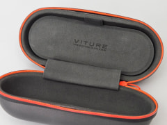 また、電子調光フィルムを内蔵しており、本体のテンプルにあるボタンを短押しすることで光の透過率を0.5%と40%の二段階に変えることができる。