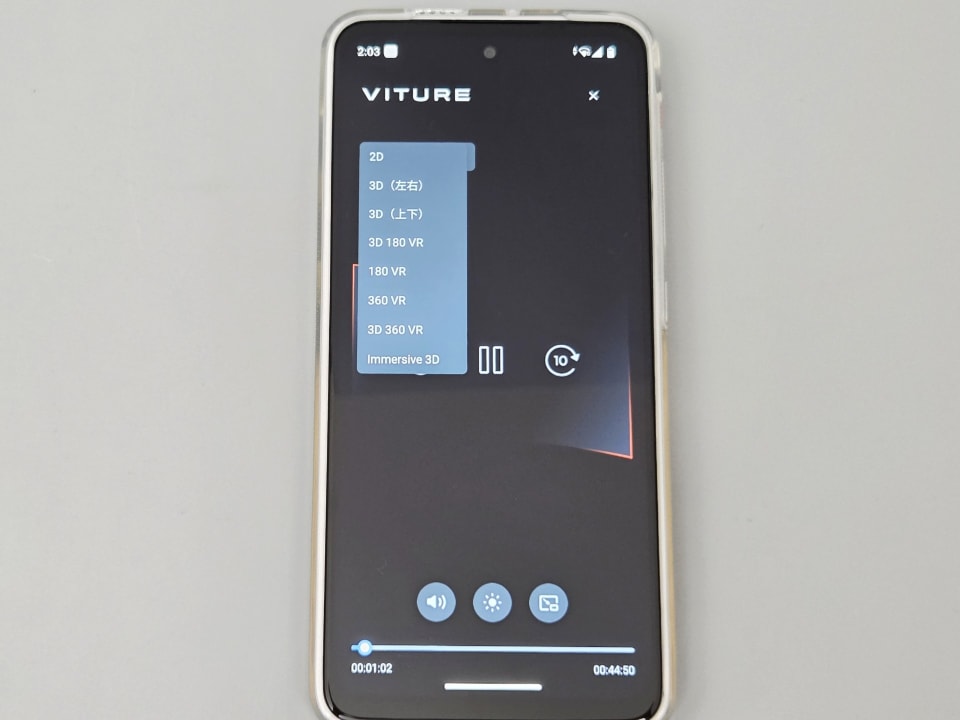 SpaceWalker独自機能として先進的なものもある。それは2Dで撮影された動画でも、擬似的に3Dで視聴できるというものだ。YouTubeで、動画を視聴中に右下に表示される「プレイヤー再生」をタップすると、複数の再生モードが選べるようになる。その中から「Immersive 3D」を選ぶだけで、今見ている動画が3D表示されるのだ。