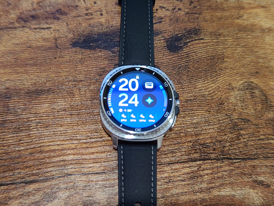ケースサイズは46mm、ディスプレイサイズは1.3インチで、スマートウォッチとしては比較的大型。最大3000ニトの画面輝度を持ち、明るさの自動調節も行ってくれるので、屋外でも視認性は十分な印象です。