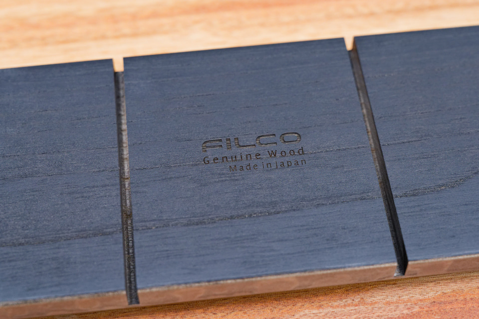 伝統工芸的な要素があるためか値段は7000円弱とお高いが、これを選んだのにはもうひとつ理由があって、ロゴなどのプリントや刻印が目立つところになかったからでもある。ECサイトで木製リストレストを探すとだいたいメーカーなどのロゴが入っていてイマイチカッコよくないのだが、FILCOの漆塗りリストレストはロゴ刻印が裏面にしかなく、シンプルなデザインがうれしいのだ。