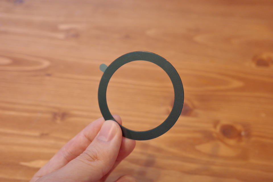 MagSafeスタンドということで、基本的にはiPhone 12以降の製品を取り付けることが想定されていますが、他社スマートフォンやタブレットも固定できるように後付式のMagSafeリングも付属しています。