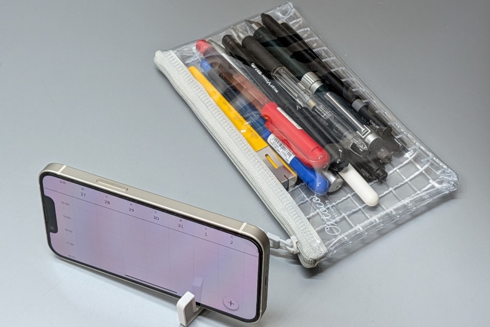 過去にもそうした場合に役立つ、外出先に持ち歩けるスマホスタンドをいくつか紹介しているが、今回紹介する「スマホが立てられるペンポーチ」は、外出先での筆記作業で持ち歩くペンケースに、スマホスタンドの機能を合体させた製品だ。