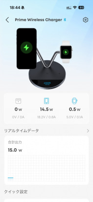 スマートフォンとBluetoothで接続すると、Ankerアプリより、充電モードの選択やスクリーンセーバーの設定、充電状況のモニタリングができます。多機能な充電器ならではの機能で、充電器すらスマートフォンから制御する時代なんだなと感心してしまいました。