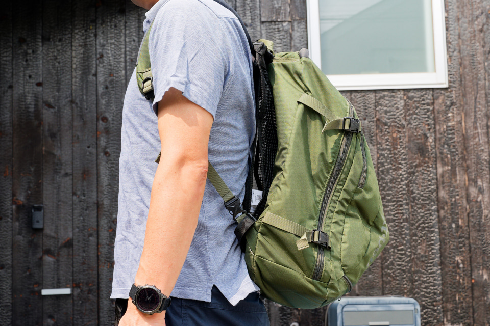 さすがに「炎天下で長時間歩き回っても汗染みが一切できない!」ということはなく、それなりにしっとりとはしてしまうが、昨シーズンまでのうんざりするようなびっしょびしょさからは逃れることに成功している。3つのバックルで簡単に脱着できるので、筆者が普段使っている複数のバックパックにその都度取り付け直してもあまり面倒に感じないのもいいところだ。