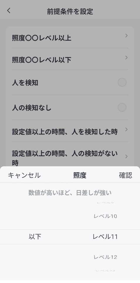 前者については、人感センサーProが明るさセンサーも内蔵しているので、オートメーションで「一定以下の明るさだったら点灯する」というような条件設定を加えるだけで対応できる。もしくは「夕方から朝方まで」といった時間指定を条件にして暗い時間帯だけオンにするのもOKだ。