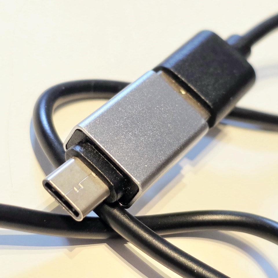 しかし、付属のケーブルは「USB Type-A to USB Type-C」なのである。PCでもUSB Type-Cポートが標準となりつつある現代において、スマホ直結もままならないこのスペックは、率直に言ってミスマッチだ。