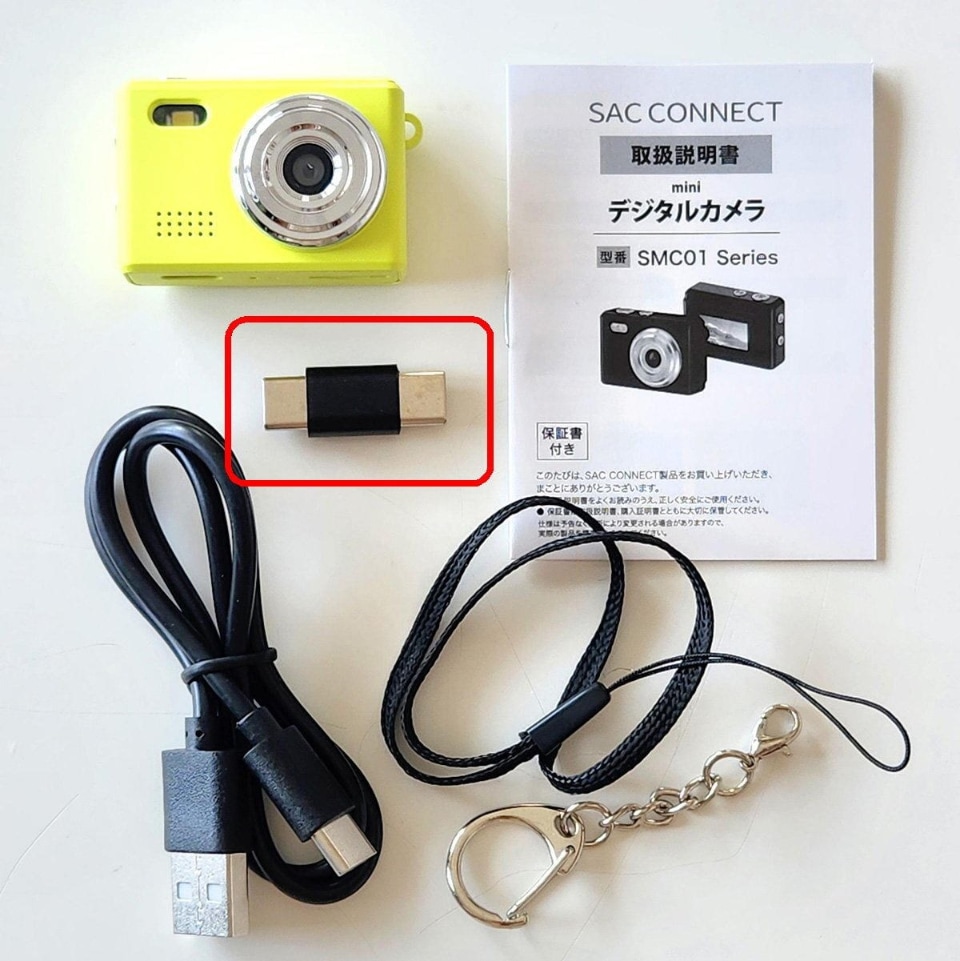 パッケージは環境に配慮したようなクラフト感のあるデザインで、中にはカメラ本体、USBケーブル、ストラップ、キーチェーン、そして取扱説明書がぎっしりと収まっている。スペックを簡単に記すと、静止画解像度は2560×1440ピクセル(約500万画素相当)、動画は1920×1080ピクセル。