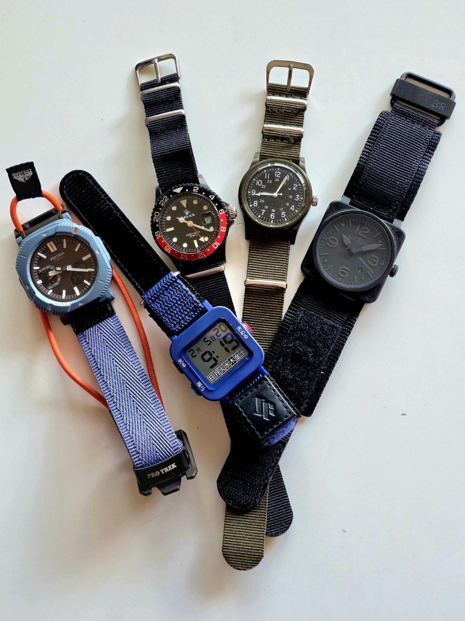 標準で装着されているのはナイロン製ストラップだ。ベルクロ式で、腕の太さに対する調整幅が広く、衣服の上からでも無理なく固定できる。筆者はこれまでにもナイロンストラップ仕様の腕時計を複数所有してきたが、装着の簡易さという点ではやはり群を抜いている。