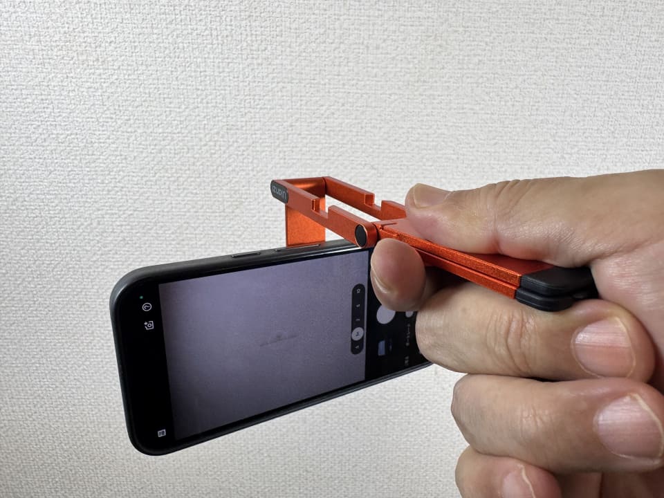 最近ではスタンドを付けたままで持ち運んだり、出張などに持って行ったりすることも。シャッターボタンはありませんが、セルフタイマーを使うことで自撮り棒のように使えるのも便利です。