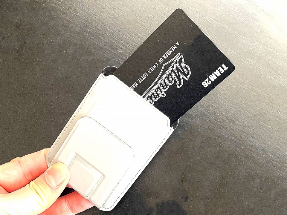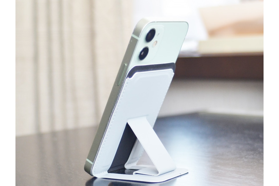 ダイソーで550円! MagSafe対応の「スタンド付マグネットカードケース」