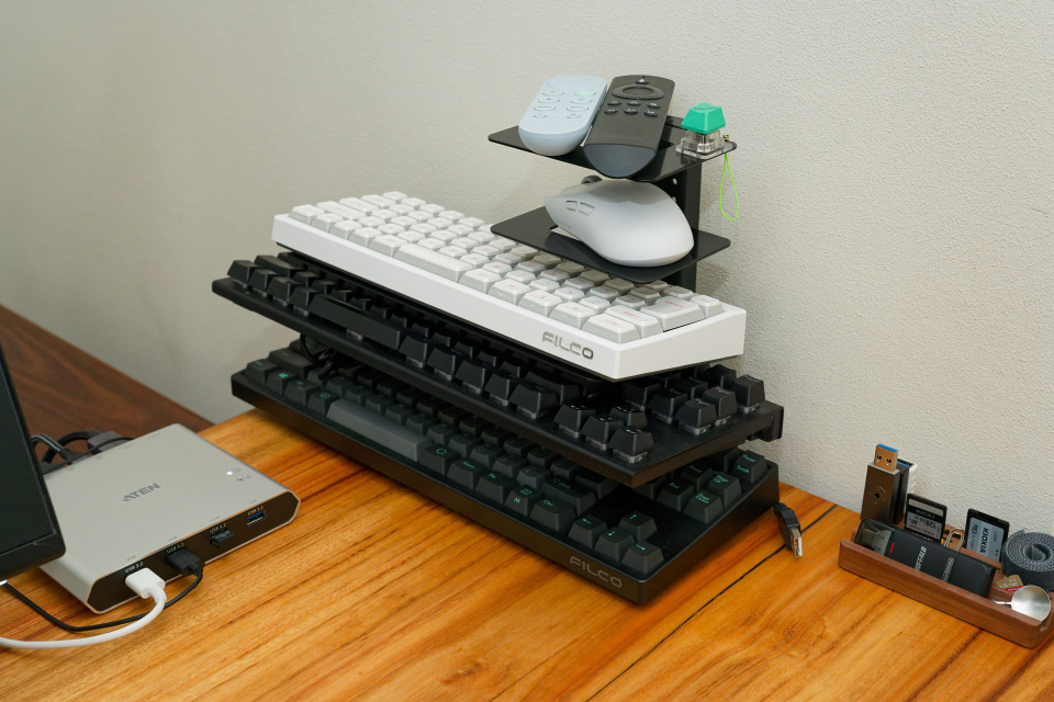 なんとなく気分でその時に使うキーボードを変えたり、変えなかったりしている筆者。なので、すぐ交換できるようにデスク上のキーボードスタンドに3台セットしています。が、これまで使ってきたスタンドは素材がプラスチックでメカニカルキーボードの重みに耐えられず垂れてしまい、高さ調整もできなかったりするので、もっとガッチリしたヤツに変えてみることに。