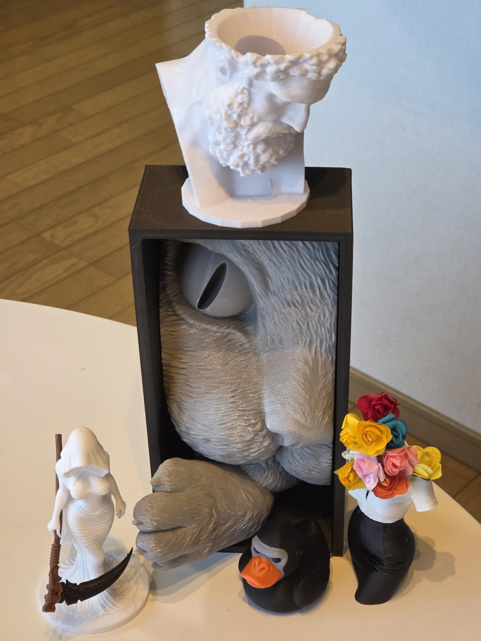 一見、よくあるラバーダックのようだが、その顔はゴリラである。FDM(熱溶解積層法)方式の3Dプリンターで出力されたこのプロダクトは、表面に無数の「積層痕」を持つ。従来のインジェクション成形(金型による射出成形)であれば「不良品」とされるこの質感こそが、実はこの新しいコレクタブル・アイテムの「味」であり、デジタル製造の証なのだ。