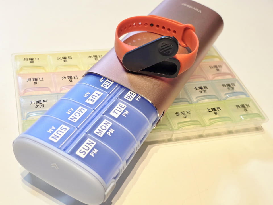 筆者の普段使いのピルケースは、自宅用とモバイル用で明確に分かれている。自宅では曜日別・時間帯別に分かれた大型ケース。外出時には、1週間分を持ち運べるコンパクトなモバイルケース。そして今回の腕時計型ピルケースは、そのどちらとも違う“第三の位置づけ”にある。