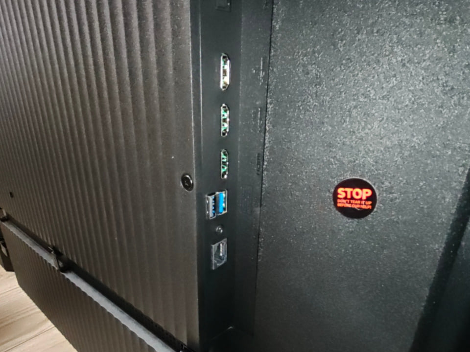 脚が取り付けられたら、あとはテレビ台にセットし、ケーブル類を繋げば、設置は完了。当たり前ですが、チューナーレスTVということで、テレビ線を繋ぐ必要がないので、ケーブル一本でも動作します。筆者はLANケーブルを繋げたり、HDMIケーブルを繋げたりしていますが、対応する端子を差し込むだけなので、特段難しいことはありません。