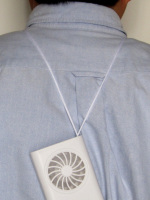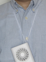 ファンがそれほど大きくないために、当たる風は首元だけに限定されるものの、ツボをおさえているからか、小型の割には快適と感じる。本来の使い方ではないが、首の後ろ側にかけて首筋に当たるようにしたら、頭も涼しくなり別の快適さも得られた。余裕があれば前と後ろ二刀流というのもいいかもしれない。ただし、後ろ向きに使うのは、紐で首を締めないように注意が必要だ(自己責任にてお願いしたい)。