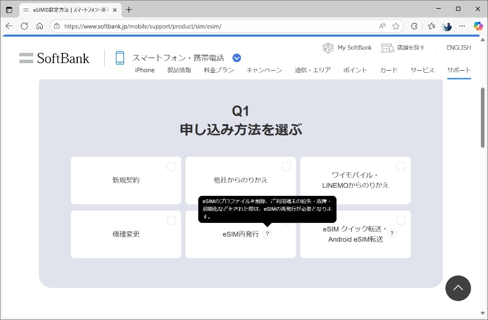 これに対し、ソフトバンクの場合には少々扱いが異なります。ソフトバンクもeSIM再発行の手数料は無料にしていますが、これは、同じ端末に再度eSIMを発行する場合の手続きを意味しています。eSIMのプロファイルを誤って削除してしまった場合などを指しており、機種変更には適用されません。