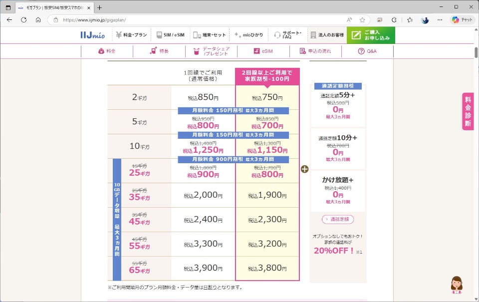 その意味では、旧1GBコースが4つの中でもっとも強化されたと言っていいかもしれません。逆に言えば、この容量がMVNOの中では比較的割高になっていたこともうかがえます。実際、競合でmineoとシェアの近いIIJmioでは、「ギガプラン」で2GBコースを850円、5GBコースを950円に設定しています。