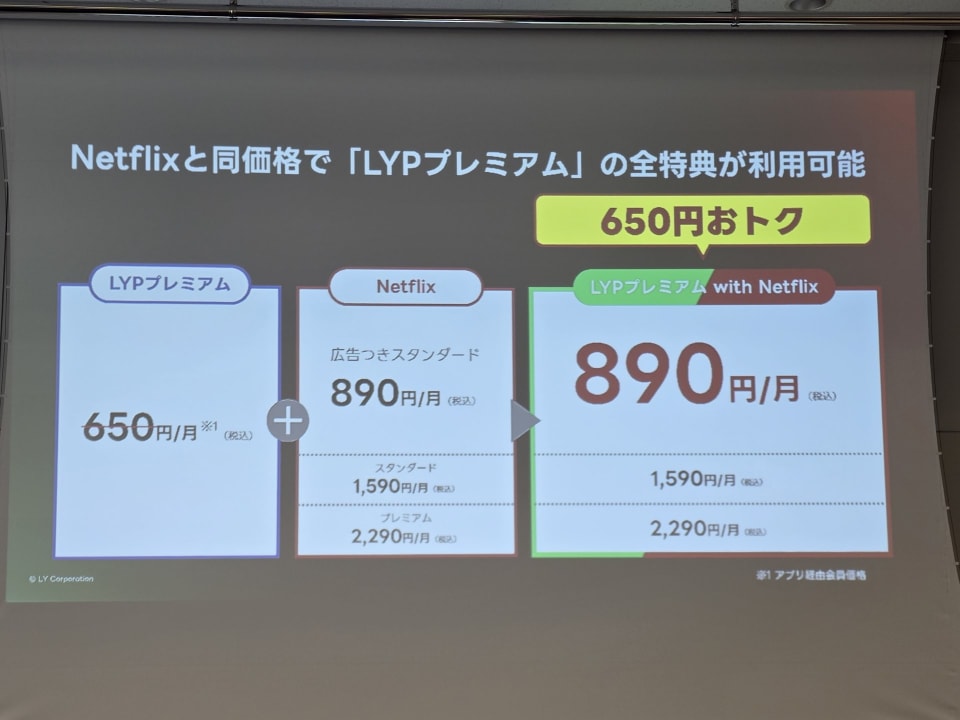 LINEヤフーは、2月に「LYPプレミアム」の新プランとして、「LYPプレミアム with Netflix」を開始します。一言でまとめると、これは通常のNetflixの月額料金を支払えばLYPプレミアムが実質無料になるというもの。料金は月額890円からとなり、最低価格のものだとNetflixの「広告つきスタンダード」が利用できるようになります。