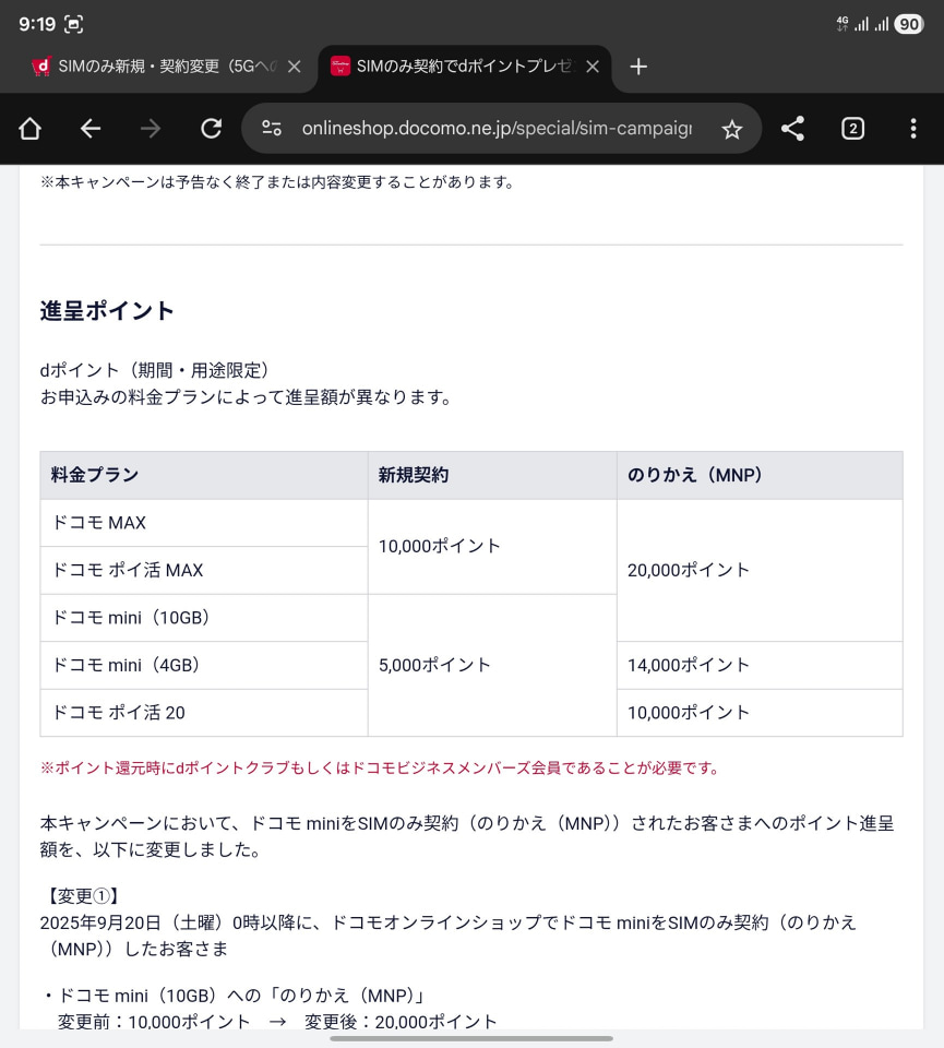 SIMのみの上限は2万円、各社ポイントで付与も額には差も