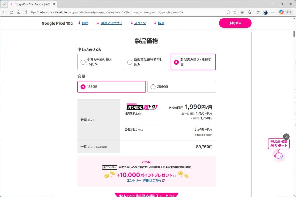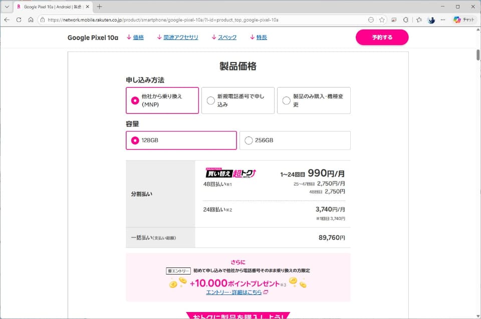 楽天モバイルもMNPならポイント込みの実質価格が1万円台に