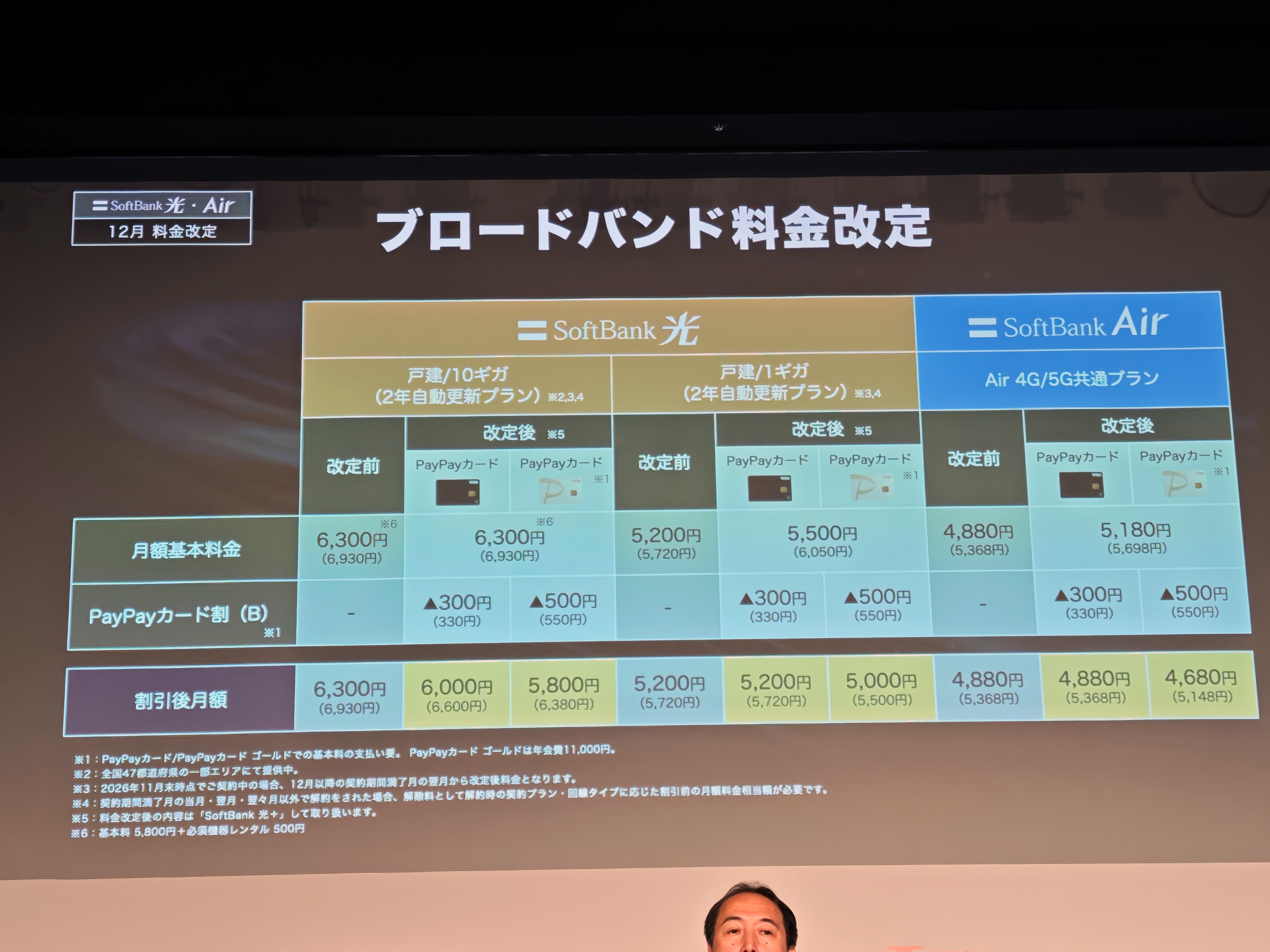 また、固定回線の「ソフトバンク光」やホームルーターの「SoftBank Air」にも12月に「PayPayカード割(B)」が新設され、PayPayカードで支払うと現状と同額、PayPayカード ゴールドだと550円の値下げになり、年会費の半分以上はここで回収できます。