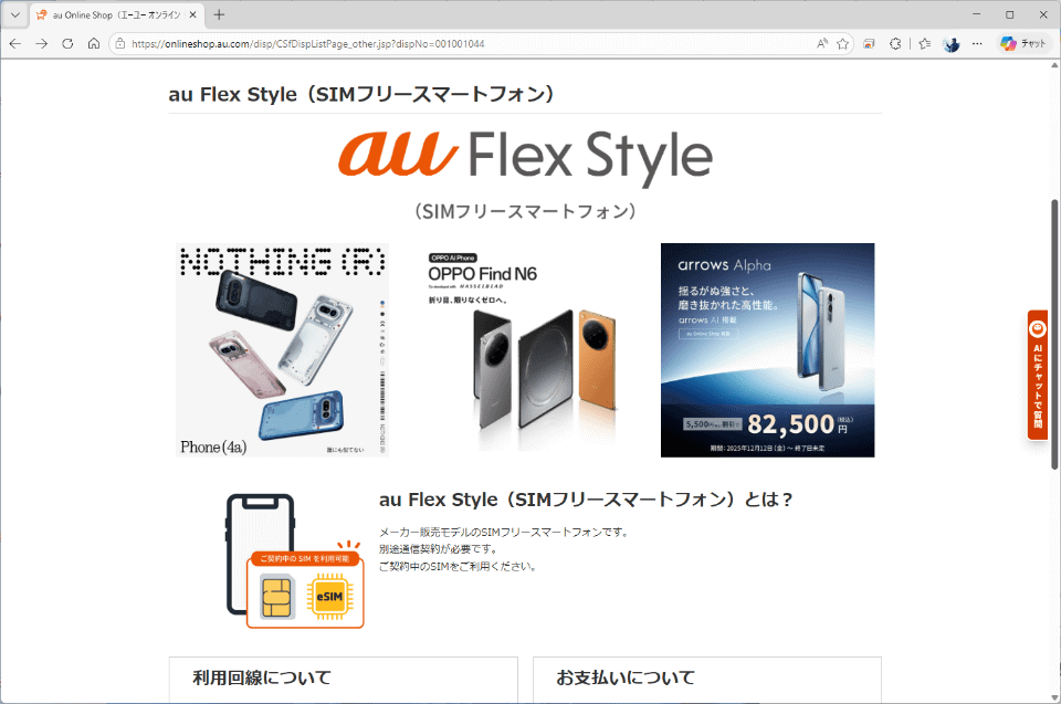 また、au Flex Styleについては、 分割払いを20万円の商品まで と定めています。そのため、Nothing Phone(4a)は割賦での支払いが可能な一方で、約30万円の「Find N6」は分割払いに非対応。本体価格は安くなっているものの、まとまって30万円が出ていくため、少々買いづらくなっています。