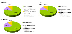 着せ替えツールは、「利用したことがある」ユーザーは、NTTドコモ59.7%、au 46.1%、ソフトバンクモバイル38.5%。ソフトバンクモバイルでは「持っている携帯電話が対応していない」が38.4%で、ドコモは同13.6%で、キャリアが積極的に展開しているかどうかでも差が出ている形だ。