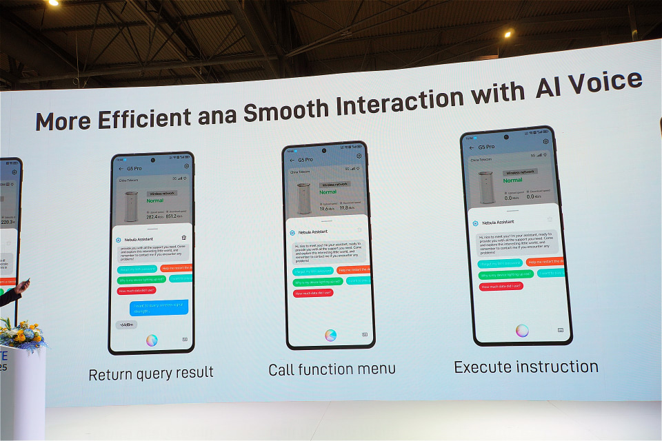 中国メーカーのZTEは、MWC Barcelona 2025の会期初日にあたる3月3日(現地時間)に、自社ブース内で発表会を開催。スマホやホームルーターなどの新製品を発表するとともに、「AI for All」という同社の戦略を発表した。AI for All戦略は、日本でワイモバイル向けの折りたたみ端末「nubia Flip2」を発表した際にも披露されていたもの。ハイエンド製品だけでなく、エントリーモデルやホームルーターにもAIを組み込んでいく方針を示した。