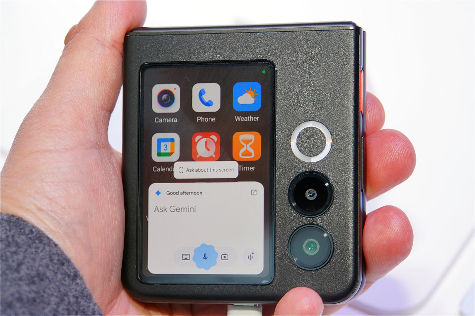 このほか、ZTEはグーグルとのコラボレーションも発表しており、Geminiアプリを同社の端末にプリインストールしていく。Geminiは電源キーの長押しで呼び出すことが可能。nubia Flip2 5Gの場合、本体を閉じた際に使用する縦長の外部ディスプレイにも、Geminiを呼び出せた。