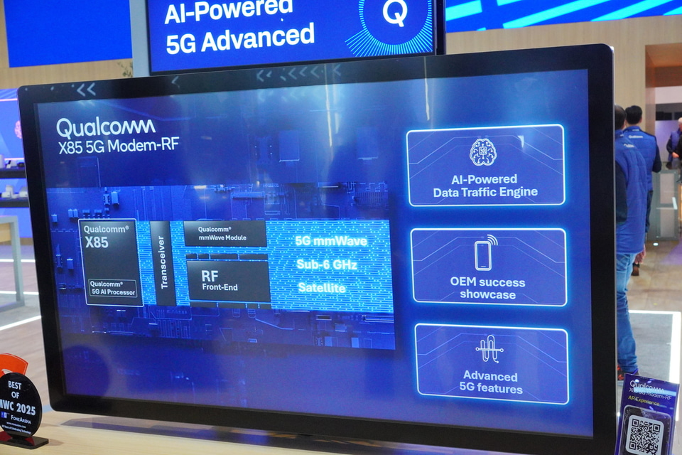 クアルコム(Qualcomm)は、MWC Barcelona 2025に合わせ、最新のモデムとなる「Qualcomm X85 5G Modem-RF」を発表した。これまで、同社のモデムはアプリケーションプロセッサーと同じ「Snapdragon」ブランドを冠していたが、同社はMWCに合わせてブランディングを変更。エンタープライズ向けの製品、ソリューションに「Dragonwing」を採用したほか、SnapdragonとDragonwingに共通する“下地”となるモデムなどには、社名である「Qualcomm」を冠することになった。