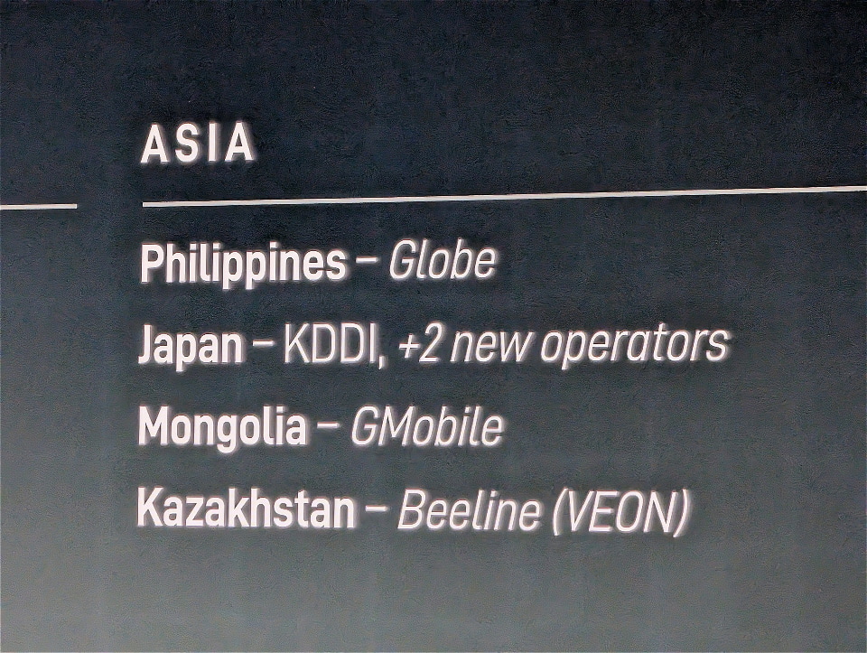 基調講演で投影されたスライドでは、アジア地域のパートナーとして、日本ですでに提携しているKDDIに加え、新たに2つの通信事業者(2 new operators)が追加されることが示された。