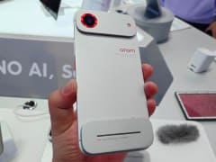 コンセプトモデルとして展示されていたモジュラーフォンの本体は、体感としてはiPhone Airよりも一回り大きいようなイメージ。カメラも単眼で、本体だけを見ればミニマリズムを感じるデザインだ。