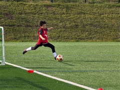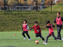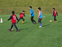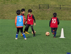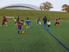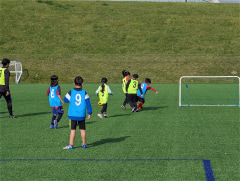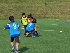 ボールを奪い合う際には、冷静なプレイを見せる子もいれば、闘志を前面に押し出して果敢に動く子もいるなど、日頃からサッカーに親しんでいることをうかがわせつつ、コーチの巧みなリードでテクニックを磨き、芝生の上での運動を楽しんでいた。