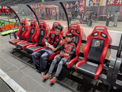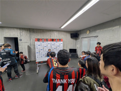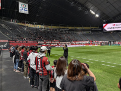 さらに、監督が試合後に記者会見をする部屋や、試合開始時に選手たちが入場するルートを通って再びフィールドへ。監督や選手が座るベンチに実際に座ってみたり、試合直前の選手たちの練習風景を見学したりと、試合観戦だけでは決して見ることのできない角度からJリーグの環境を体験する、貴重な機会となった。