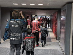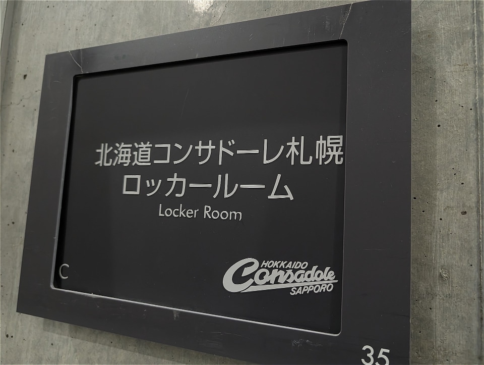 この日は午後から北海道コンサドーレ札幌と水戸ホーリーホックの試合が予定されており、試合直前のロッカールームには、選手たちに向けて用意された飲料やユニフォームなどがセッティングされた状態。通常のスタジアムツアーではあり得ない光景を目の当たりにした。