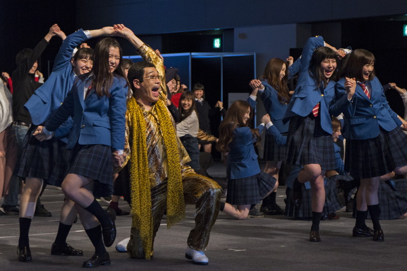 ピコ太郎は、「PPAP」と異なり、ダイナミックな動きが続くダンスを4セット続けて踊った後は「汗びっしょりになった」とコメント。撮影の合間には大原とのかけ合いで仲の良さも示した。
