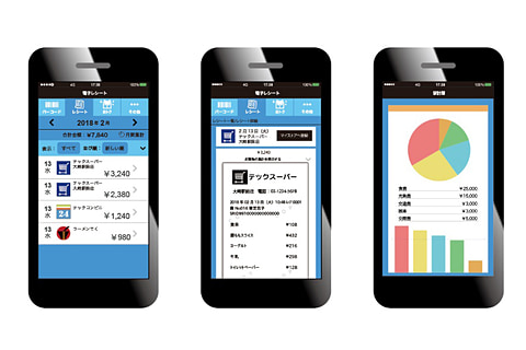 来店客は、スマートフォンに「電子レシートアプリ」をダウンロードし、会計時にアプリのバーコードを提示することで、電子レシートを受け取れる。電子レシートアプリは、他のアプリと連携するインターフェイス(API)を備え、ユーザーの希望に応じてマネーフォワードなどの家計簿アプリに転送したり、LINEで共有したりできる。