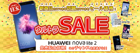 nova lite 2のほか、P10 liteは6800円、Mate 10 Proは5万9800円、AQUOS sense lite SH-M05は1万5800円、ZenFone 4は3万6800円で販売される。