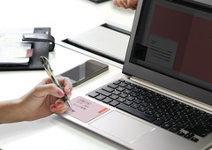 wemoは、メモ自体をなくしてしまうことを防いだ「身に着けるメモ」で、第1弾のバンドタイプは手首に巻き付けて、第2弾のパッドタイプはノートパソコンなどに貼り付けて携帯できる。