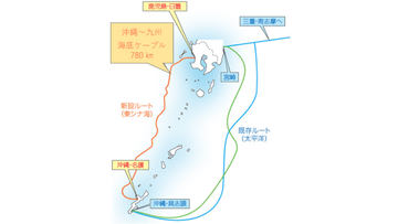 過去の災害を教訓に、今後に向けた対策として、沖縄~鹿児島間で、東シナ海側を通る海底ケーブルが敷設されることになった。敷設ルートは最も深いところで深度200m程度。いわゆる大陸棚で、安定した地形のルートになるという。