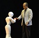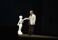発表会は孫氏とPepperが出会う演出からスタートした。この演出のためだけに迫りのあるステージをわざわざ選んだという。