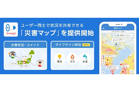 ヤフーでは、国土交通省や気象庁、自治体の情報をもとに、河川水位情報を公開している。基準水位の到達点別に色をつけて河川を表示し、注意が必要な河川を河川名をポップアップして地図上に表示する。