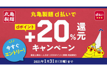 「d払い」、Coke ON Pay/丸亀製麺/初めて利用の還元、本日12日スタート