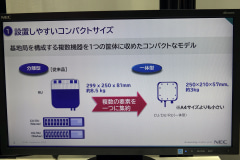 また、機器をA4サイズ程度に小さく、また約3kgに軽量化することで、これまで設置が難しかった場所でも、エリア化することができる。複数の機能を集約することで、エリア拡張時もかんたんに対応できるとしている。