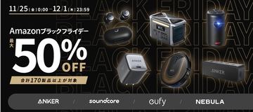 アンカー・ジャパン(Anker)は、「Amazonブラックフライデー」において、充電器やモバイルバッテリーなど合計170以上の製品を割安な価格で販売する。最大で50%オフになるという。