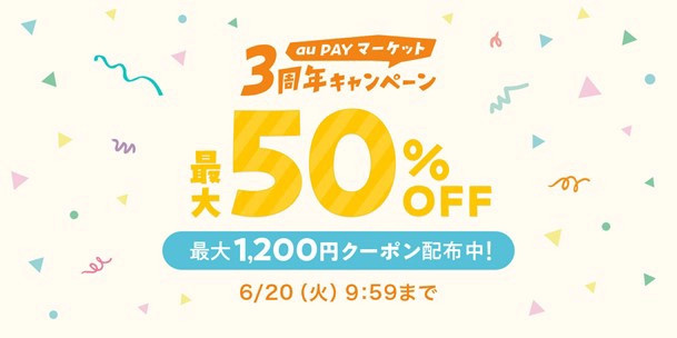 KDDIとauコマース&ライフは「au PAY マーケット 3周年キャンペーン」の第2弾を開始した。最大で50%割引のセールやクーポンなどが配布される。期間は6月20日まで。