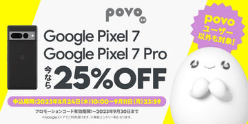 KDDIは、UQ mobileにおいて、グーグル(Google)製Androidスマートフォン「Pixel 7」を発売した。価格は6万8220円。割賦払いにも対応し、たとえば36回払いの場合は1回あたりの支払額が1895円となる。