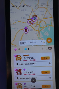 端末の位置情報を活用したゲームで、街中を移動しながらモンスターを捜索し、フレンドと協力しながら討伐を目指すゲーム。