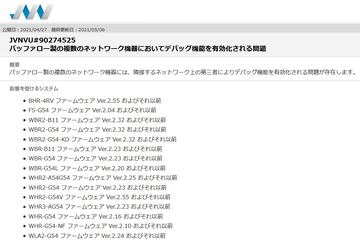 情報処理推進機構(IPA)セキュリティセンターとJPCERTコーディネーションセンター(JPCERT/CC)は、バッファロー製の複数のWi-Fiルーターおよび無線LAN中継器にOSコマンドインジェクションの脆弱性が存在することを公表し、対象製品を使用中のユーザーはファームウェアのアップデートを行うようによびかけている。